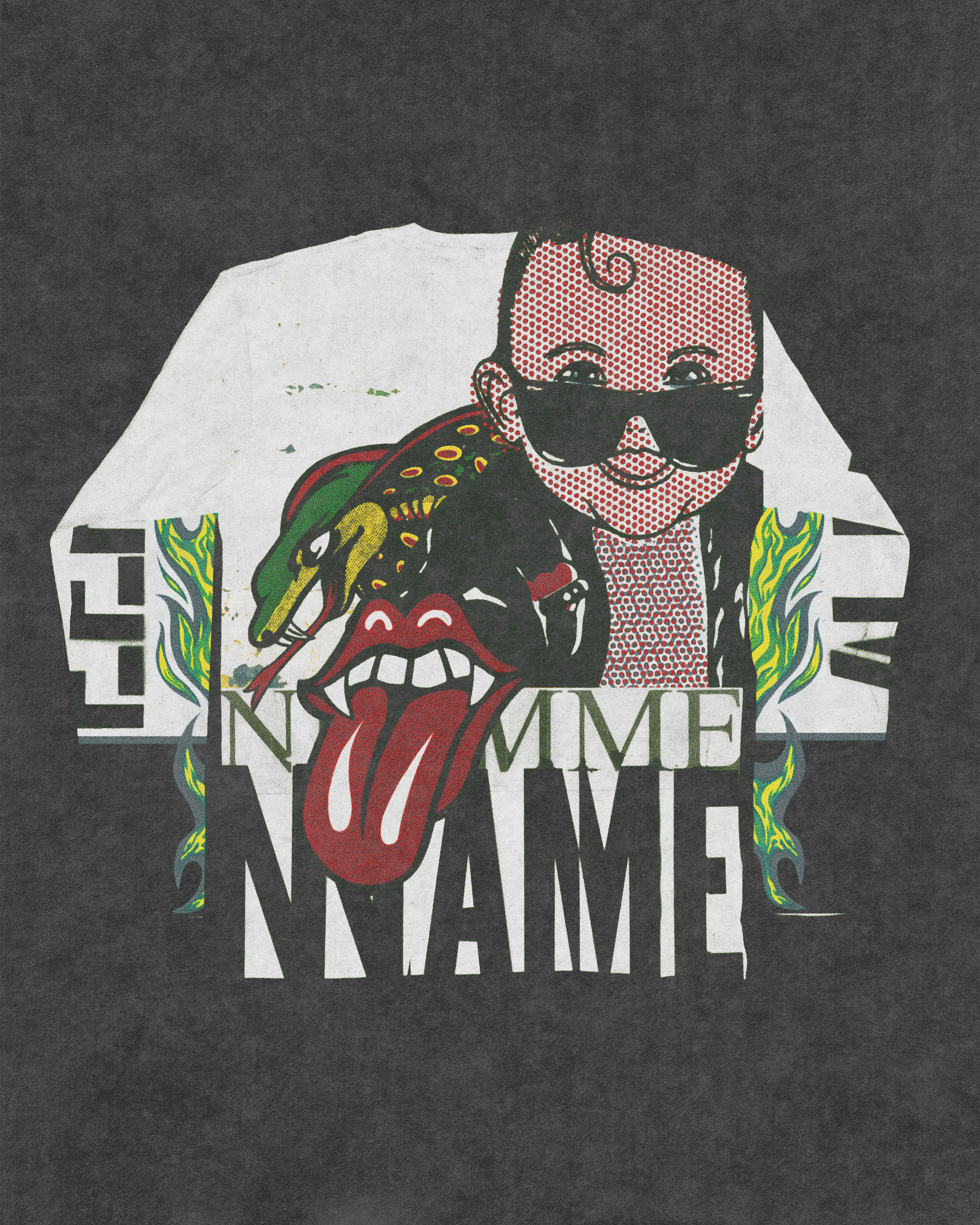 Imaginamos una pieza con elementos gráficos reconocibles de nuestro entorno y contexto como propuesta alternativa para la marca NNMM. Tomamos parte de esta gráfica popular y la mezclamos con frases que forman parte del pensamiento y universo de la marca, buscando un equilibrio entre lo recargado y los espacios en blanco.