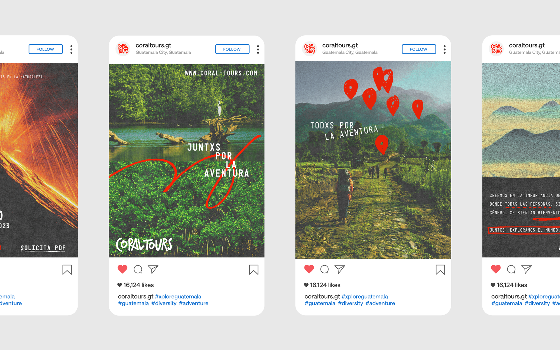 Con identidad visual vibrante y energética, invita a descubrir Guatemala desde una perspectiva inclusiva, trazando nuevos caminos tanto en sus expediciones como en su comunicación visual.